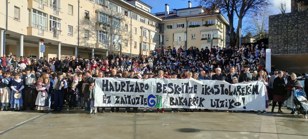 1967az geroztik herritarren jabetzakoa den proiektua, herriaren borondatetik sortua eta herriarentzat. Herriarekin konprometitua: herria egiten dihardugu, etorkizuneko herritarrak auzolanean, herrigintzan, komunitatean inplkatuko diren pertsonak izatea nahi dugu, ekintzaileak eta aktiboak. Herri onurako ikastola da gurea.