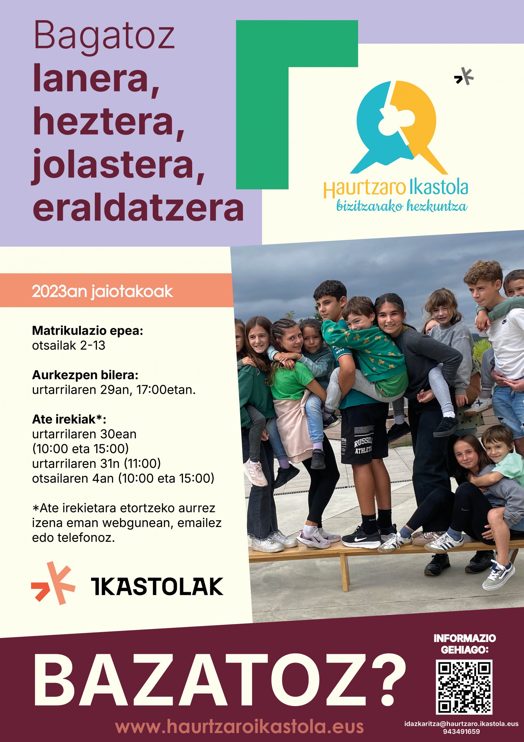 Haurtzaro Ikastola, hezkuntza eta askoz gehiago. Bazatoz?