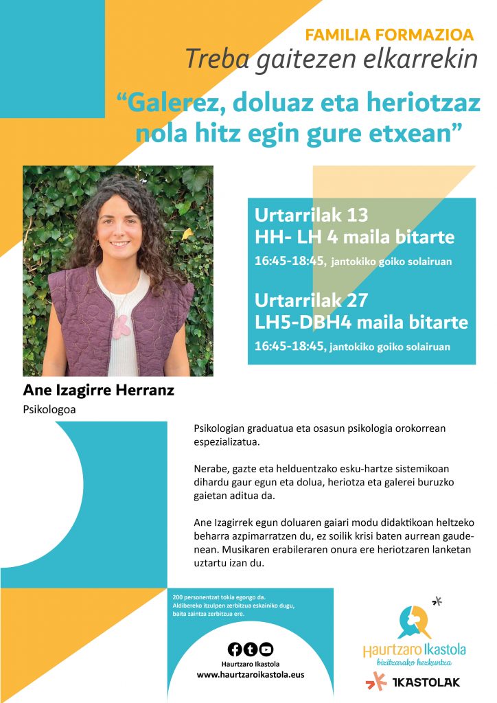 - Galerez, doluaz eta heriotzaz nola hitz egun gure etxeetan. Ane Eizagirre. Psikologoa.